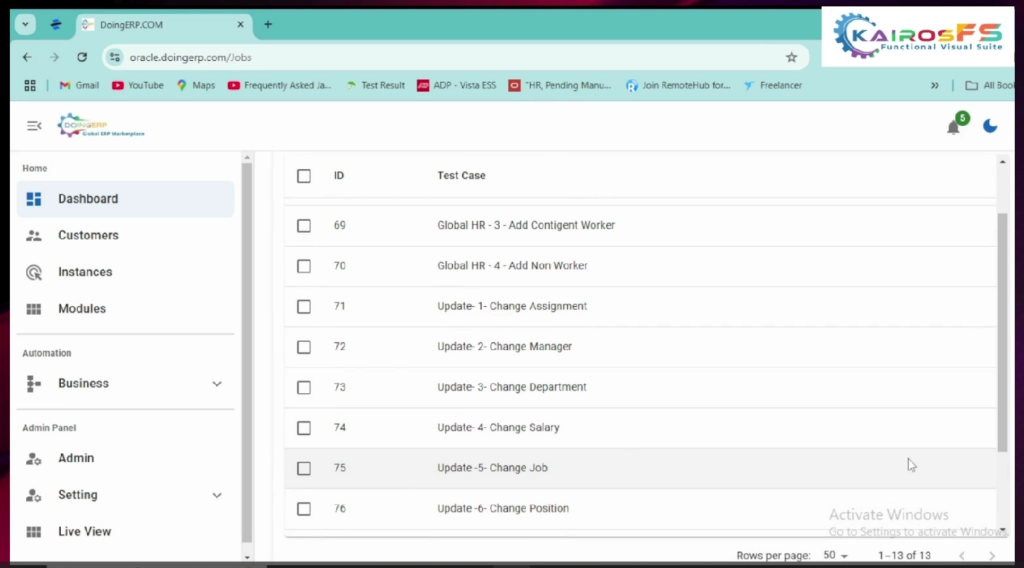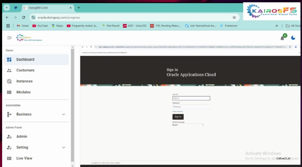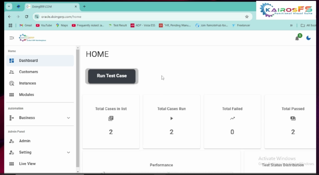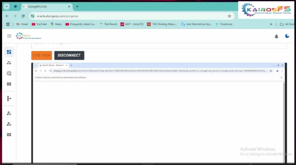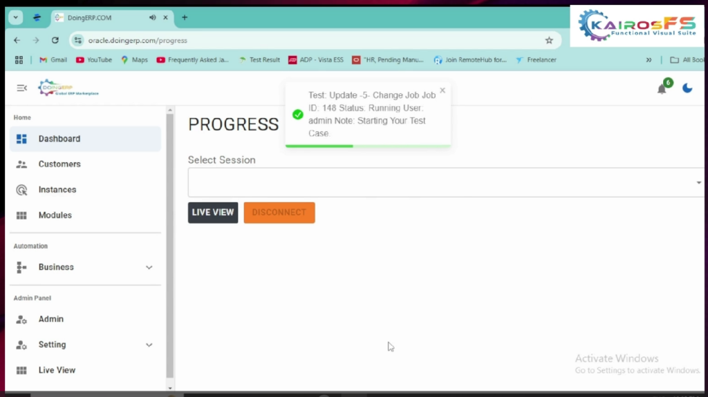 8. For the live view select the test case name to see how the execution is progressing you can view the  step-by-step execution of all components once the browser is launched it will log into the Oracle application while executing the live