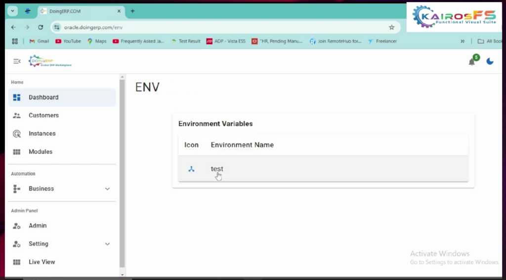 3) Choose Environment Test