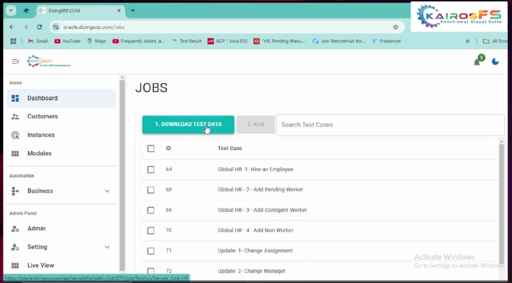 4. If you want to execute the test case update for change job , first download the test data file download and update the test data file with the required  details once you have updated the required Fields refer to the video on  how to update the test data for a particular test case