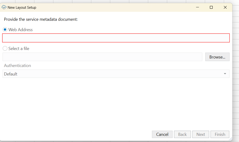 2. In the modal dialog, enter the API URL as the web address and click Next.