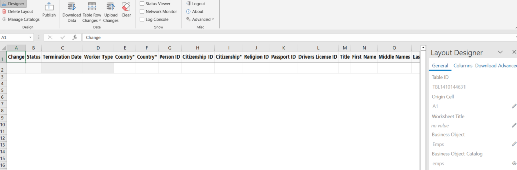 1. After completing the setup, you will see the configured business object on the right-hand side of the Excel window.