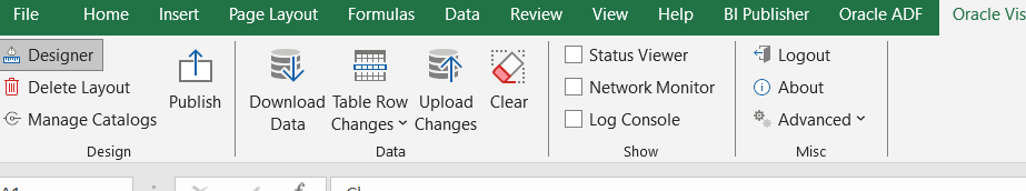 5. Once installed, open Excel, and you will see a new tab labeled “Oracle Visual Builder.”